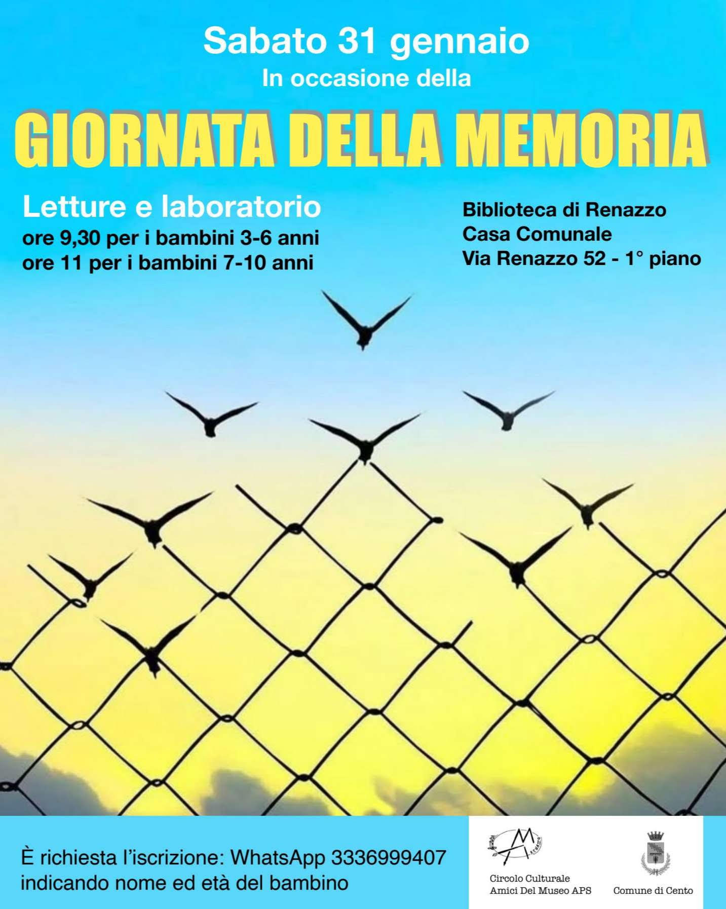 Sabato 31 gennaio, in occasione della Giornata della Memoria, gli amici del museo di Renazzo organizzano presso la biblioteca Comunale di Renazzo (Via Renazzo 52 - 1° piano), una lettura e un laboratorio per i più piccoli e una lettura per una riflessione con i piu grandi.