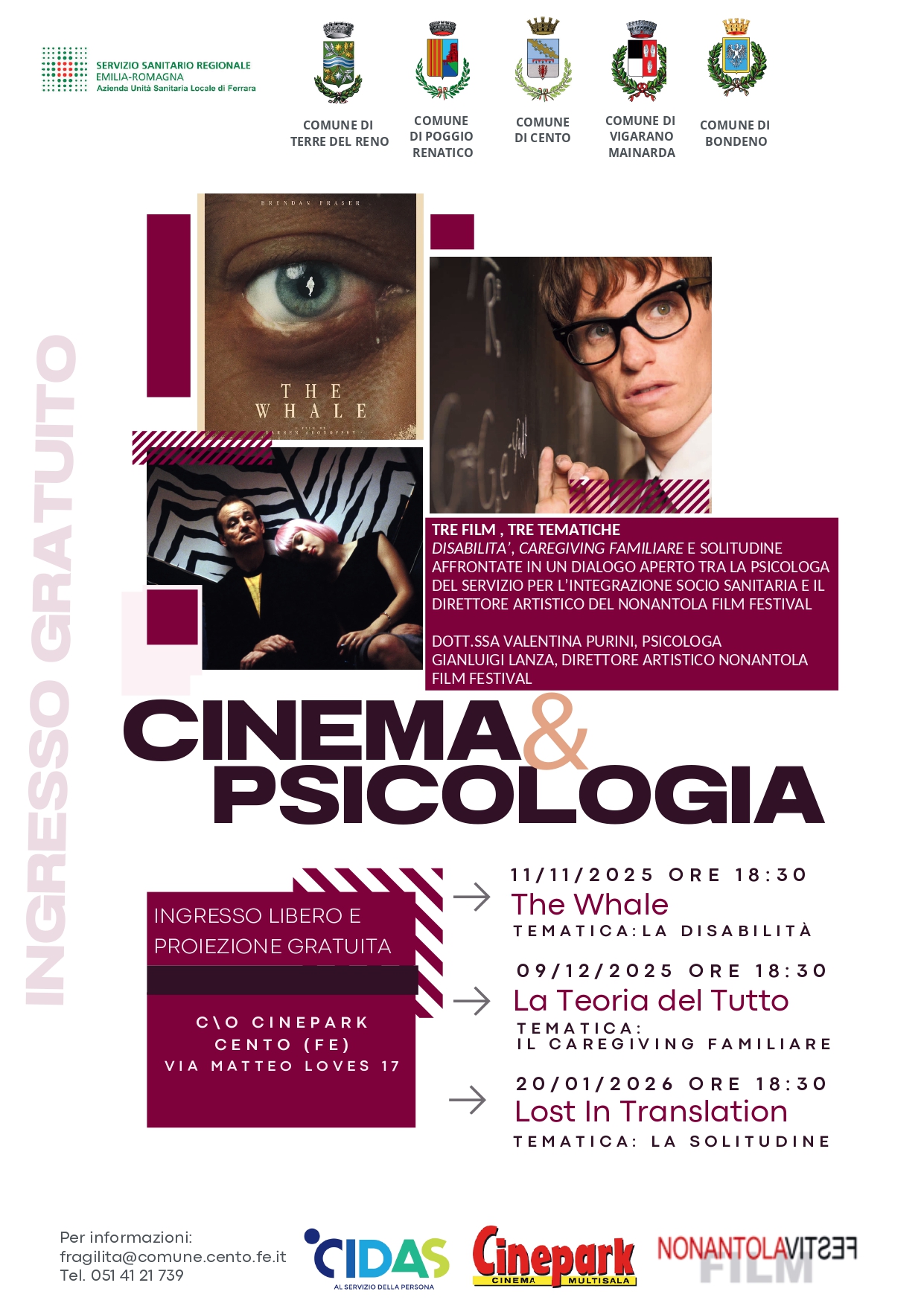 Tra le fine del 2025 e l’inizio del 2026, il Servizio per l’Integrazione Socio-Sanitaria propone una rassegna cinematografica in fascia preserale presso il Multisala Cinepark, dedicata ai temi inerenti il supporto psicologico in contesti di fragilità.
