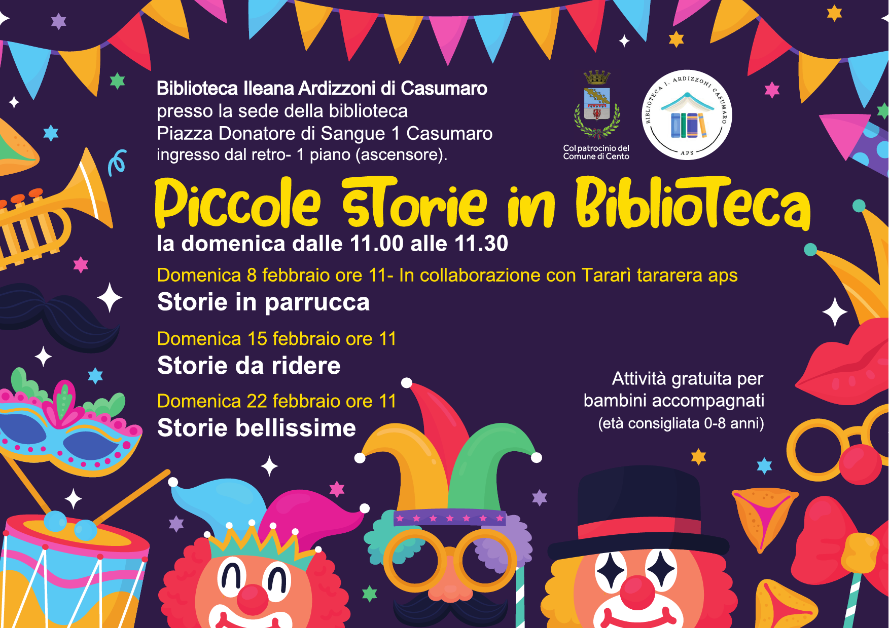 Presso la biblioteca Ileana Ardizzoni di Casumaro, sede di Piazza Donatore di Sangue 1, Casumaro.